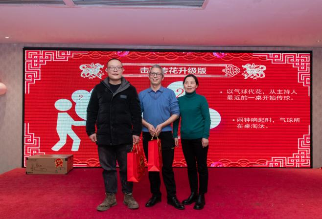 會年度工作總結(jié)暨頒獎儀式結(jié)束后,17:30雷立行的迎新春晚宴正式開始。首先公司總經(jīng)理曹總帶領(lǐng)著中層干部給每桌同事敬酒,對大家這一年來的辛苦付出表示了感謝。酒過三巡后就是大家期待的發(fā)紅包環(huán)節(jié),由曹總開始在公司微信群給大家發(fā)紅包,現(xiàn)場的歡呼聲不絕于耳;之后就是我們的游戲環(huán)節(jié)。幾輪有趣的游戲下來,年會的氣氛被炒熱。緊接著就進行了大家期待已久的抽獎環(huán)節(jié)。抽獎環(huán)節(jié)一共有八個獎項:陽光普照獎是紅包52名,六等獎是現(xiàn)金紅包7名,五等獎是蘇泊爾火鍋烤肉一體鍋6名,四等獎是山本空氣炸鍋5名,三等獎是蘇珀爾電飯煲4名,二等獎是雅詩蘭黛護膚品3名,一等獎是SKG按摩儀2名,特等獎是洗地機1名。在大家高漲的抽獎熱情和輕松快樂的氛圍中,2022年度雷立行聚餐落下帷幕。